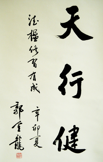 匾挂在客厅中央,印象及其深刻,师生之情直让人羡慕不已。凌老师见后说,这种格式是他一生都没看到过的,只有你们的小凌老师想得出来。凌门早年弟子书法家朱东奇得知大加赞赏,慨然而言,今日始知凌氏团队能有今天的原因了。肖师真乃性情中人也,毫无虚假。陈德楹第一时间肯定,应该讲没有比这三字更有震撼力了。
