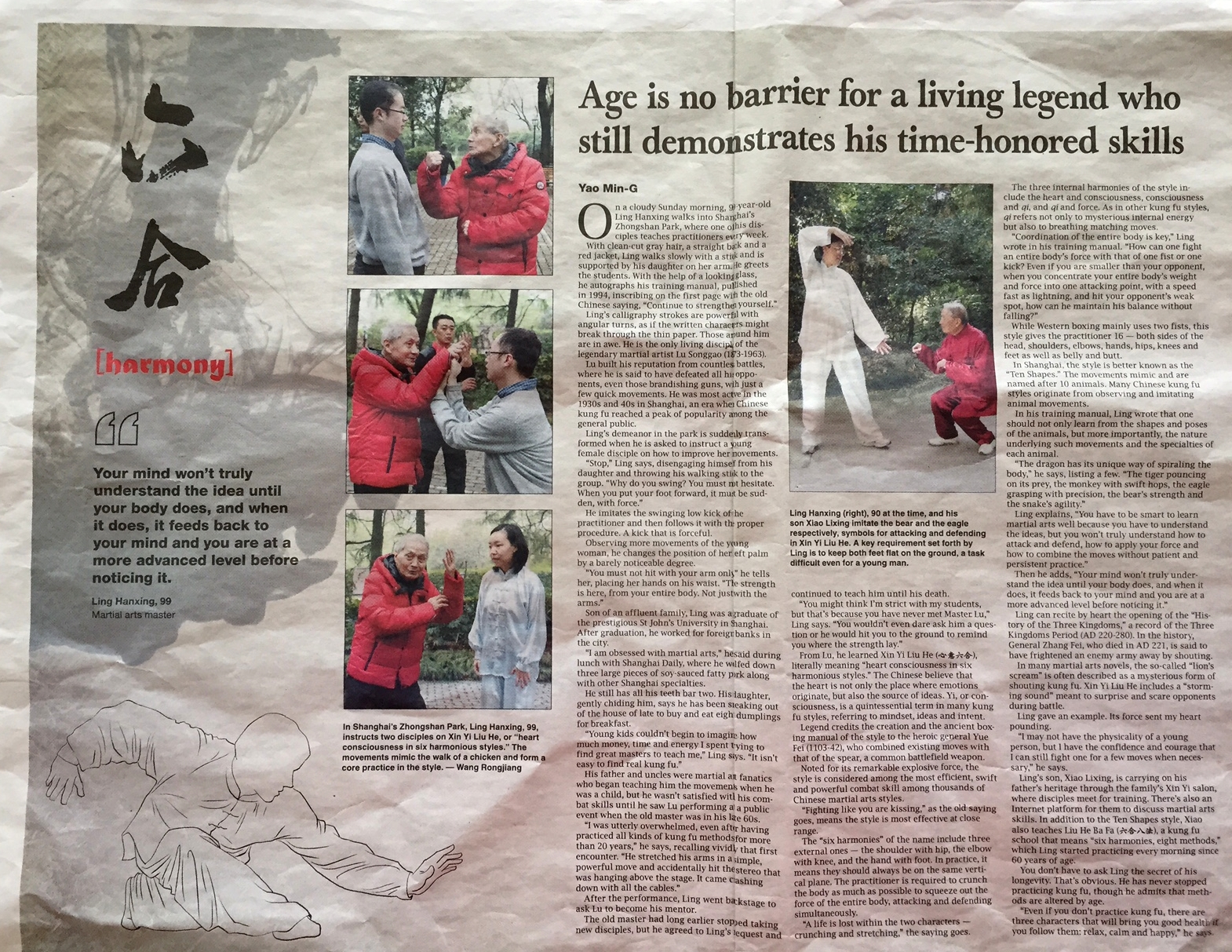 凌氏心意六合拳凌氏心意六合拳-凌氏拳艺心意六合拳论坛老骥伏枥——姚敏吉(上海英文日报刊登)